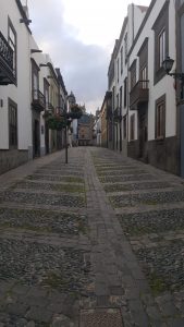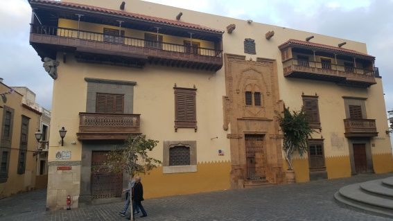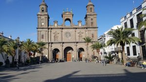Una vez alquilado el coche podemos empezar con nuestros recorridos. Al llegar por la mañana pudimos dedicar la tarde del primer día a recorrer la ciudad. Como nuestro hotel estaba cerca del popular barrio de Vegueta, parte antigua de Las Palmas, aprovechamos para sumergimos en sus calles, cogimos la Calle Triana hasta la Avda de Calvo Sotelo, y ya en el barrio de Vegueta comenzamos a recorrer sus calles, con sus antiguos edificios entre los que encontramos la catedral, la Casa de Colón, el Mercado de la Vegueta, y distintas plazas como la plaza de Santa Ana, la plaza de Santo Domingo, donde había una gran expectación porque iban a sacar los pasos de Semana Santa. Durante los días posteriores y tras llegar de las visitas a la isla, al anochecer solíamos ir a este barrio para cenar y disfrutar de su encanto. Así descubrimos también la Alameda de Colón y la Plaza de San Francisco.