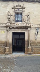Nos dirigimos hacia el norte por la Calle Maestra, encontramos a nuestra derecha la Oficina de Turismo, junto a ella está un palacio mozárabe con techos de madera, aljarfe, con bonitos diseños: Palacio del Condestable Iranzo, construido en el siglo XV bajo un estilo que recuerdo al mudéjar toledano.