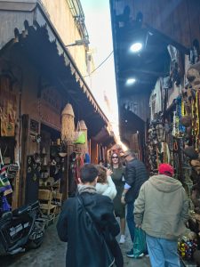 - El Mellah (antiguo barrio judío), Según nos comentan las casas judías tienen balcones y dan a la calle, mientras que las musulmanas no tienen ventanas al exterior, sino todo hacia un patio central. Nos recomiendan no internarnos en el barrio por la inseguridad. Actualmente queda muy poca población judía ya que emigraron a Israel.