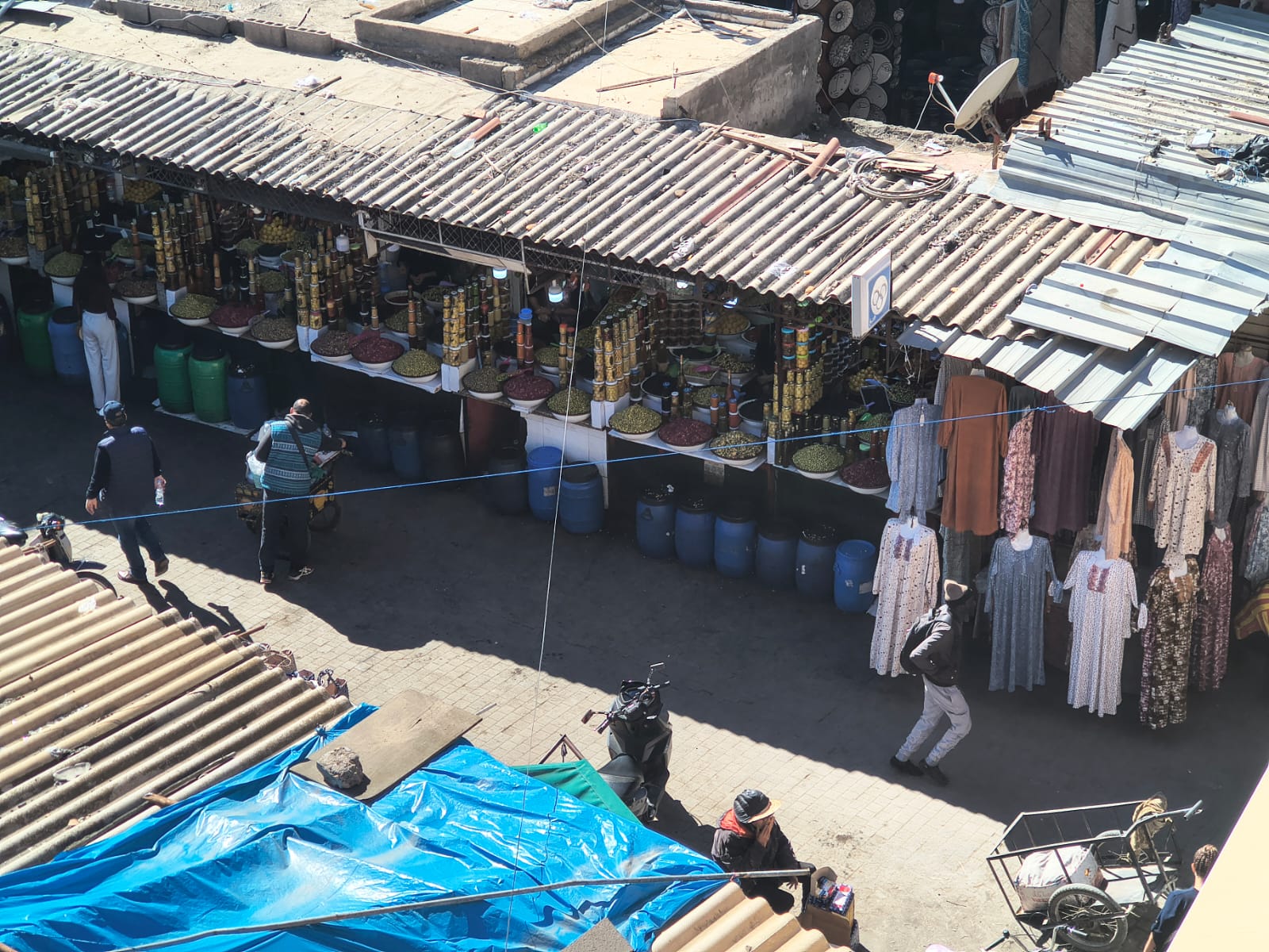 - El Mellah (antiguo barrio judío), Según nos comentan las casas judías tienen balcones y dan a la calle, mientras que las musulmanas no tienen ventanas al exterior, sino todo hacia un patio central. Nos recomiendan no internarnos en el barrio por la inseguridad. Actualmente queda muy poca población judía ya que emigraron a Israel.